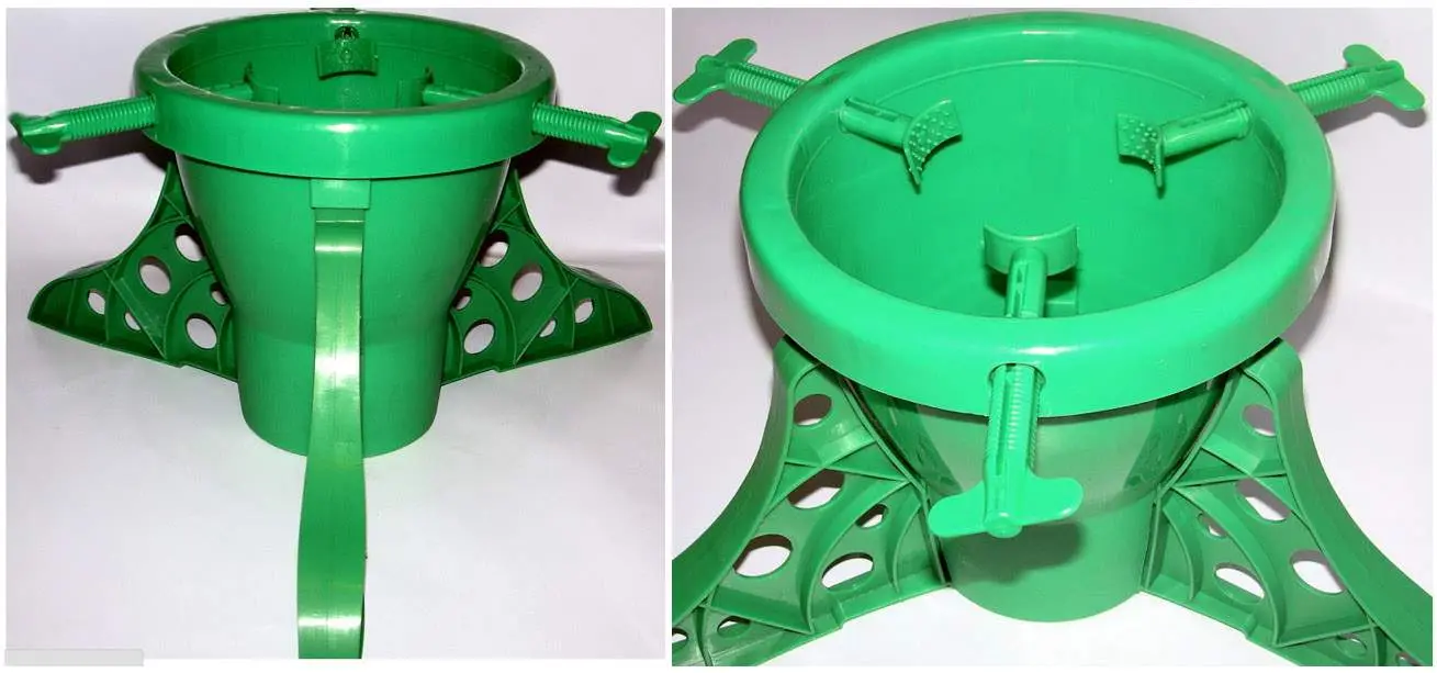 - Ранее для закрепления хвойного деревца использовали деревянные подставки – крестовины, но у них был один большой недостаток – при их использовании ель не подпитывалась влагой. Поэтому Розарио советует использовать специальную подставку, которая крепко держит с помощью специальных зажимов растение, а так же в неё наливается вода для питания Ели. Воду в подставку необходимо налить горячую (но не кипяток) с добавлением небольшого количества уксуса или лимонной кислоты. |